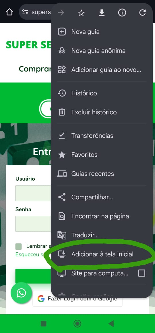 4° APERTE EM "ADICIONAR Á TELA INICIAL"