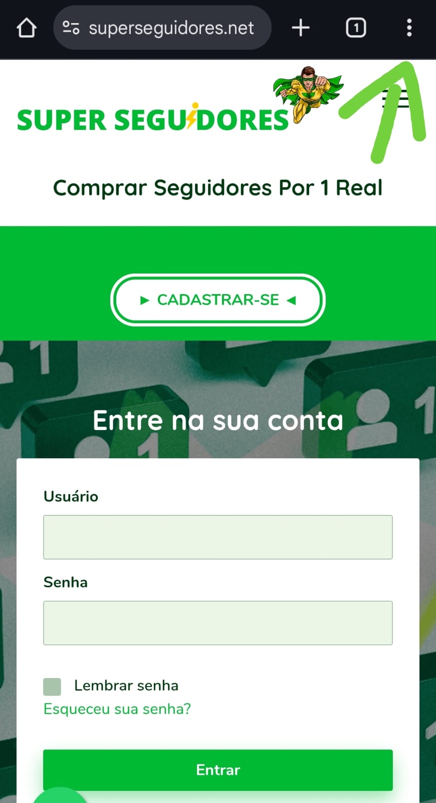 2° ESCREVA "SUPERSEGUIDORES.NET" E APERTE ENTER