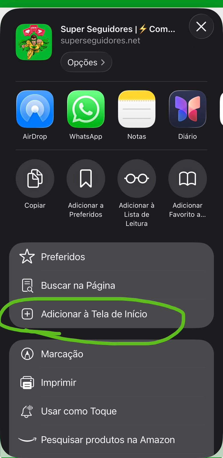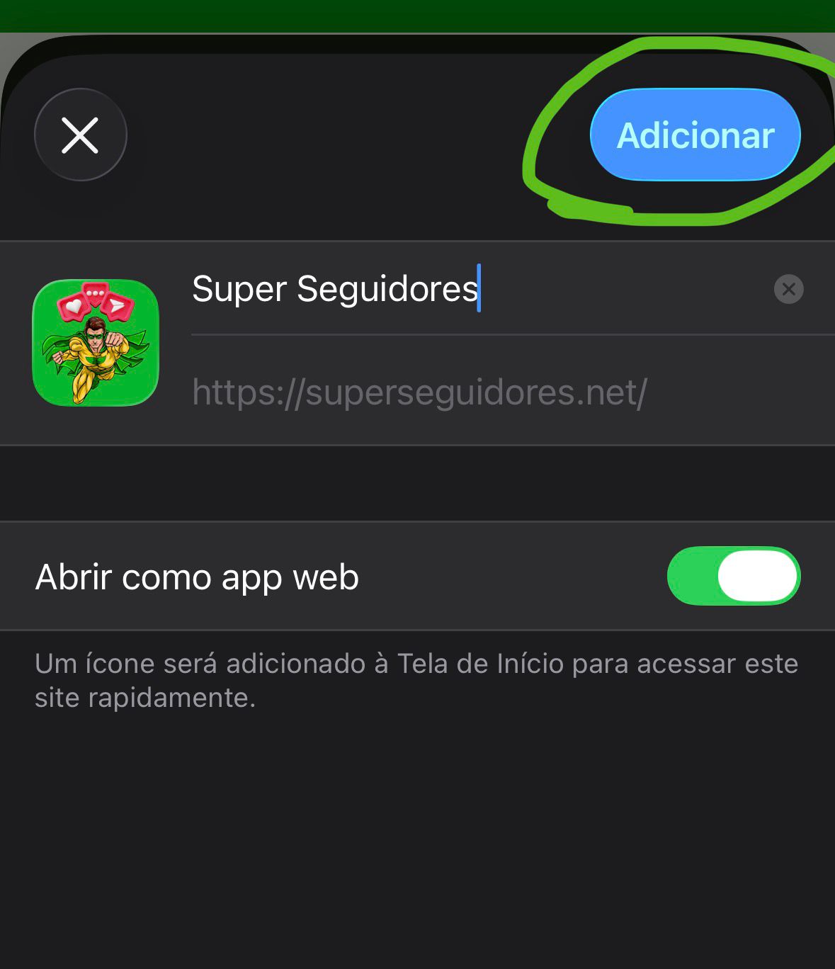 6° APERTE EM "ADICIONAR Á TELA DE INICIO"
