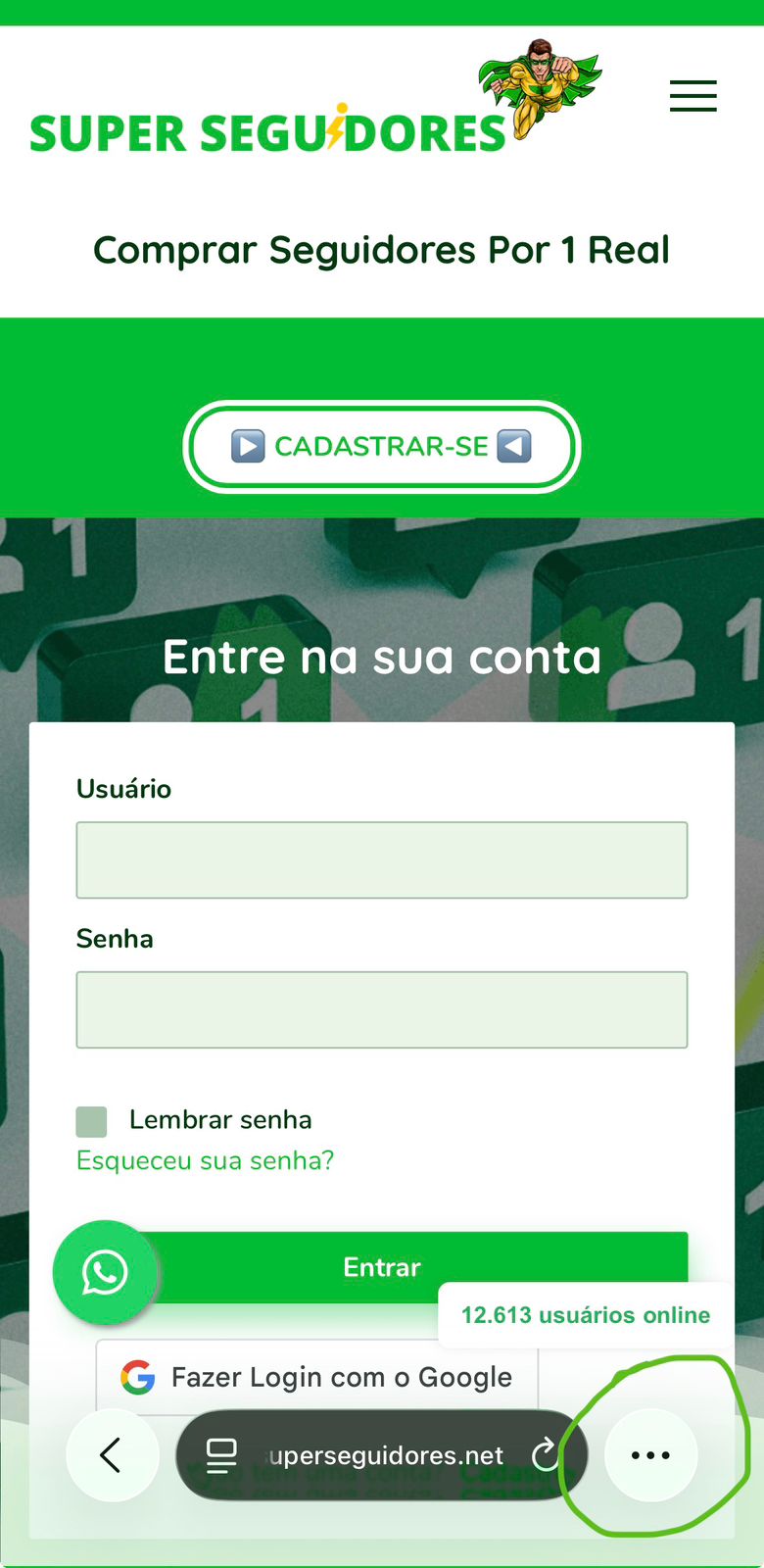 2° ESCREVA "SUPERSEGUIDORES.NET" E APERTE ENTER